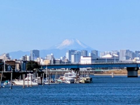 おかげさまで、江戸川区側のサイクリングロードから今井橋越しに見える富士山がばっちり見られました。ありがたいです!