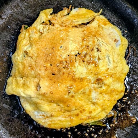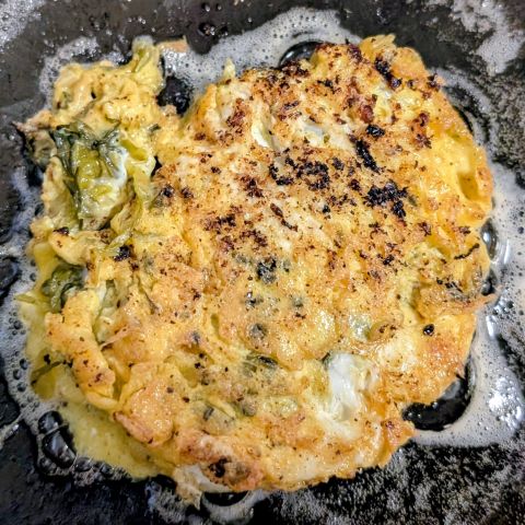 高菜漬けが残っていたので、玉子焼きに入れました。すごく合うかなと思ったのですが、イマイチでした。ちょっとお砂糖か味醂を入れたほうがよかったかしら?