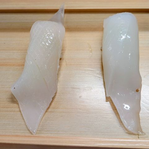 刺し盛りにあった大分名物姫ダコがとてもおいしかったので、普段はお寿司では食べないのですが、イカも頼んでみました。ミズイカというアオリイカの一種です。これもまたコリコリしていて最高でした。ありがとうございます!