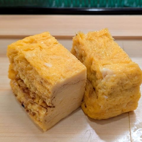 締めに玉子焼き。関東と関西の中間ぐらいの味付けで、手作り感がうれしかったです。
