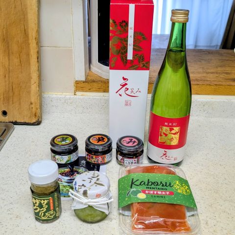 帰宅してから撮影しましたが、大分空港で買ったお土産です。部長さんのお勧めの生ゆず胡椒は前列の真ん中です。