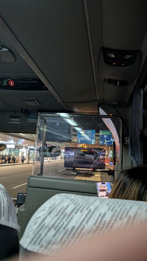 私の英語がひどかったみたいで、あと何分でバスが来るのか聞かれたと勘違いしたみたいです。何と、エアポートライナーの運行状況を知らせるアプリがあって、それを見せながら、あと2分で来ると教えてくれました。デジタルを使いこなしています。