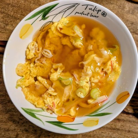 カニ玉。こちらは一人でいただきました。カニはやっぱりカニカマです。