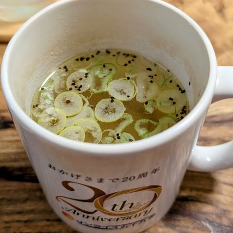 鶏を茹でたときにできた鶏スープ。マジでおいしい。ありがとうございます。