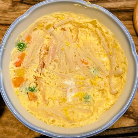 茶碗蒸し。レンジで作るのですが、ツルッと作れるレシピを忘れてしまいました。
