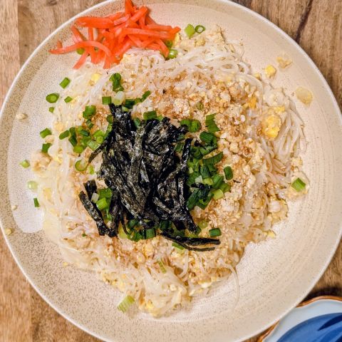 サラダのほかは、明太しらたき。これも油炒めではなく、煎り茹でしました。ただ、香り付けにごま油を数滴垂らしました。