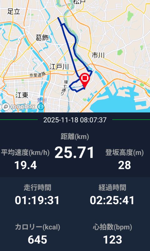 まあまあの距離でした。パワースポット巡りはポタリングに近いので、平均速度はどうしても遅くなります。