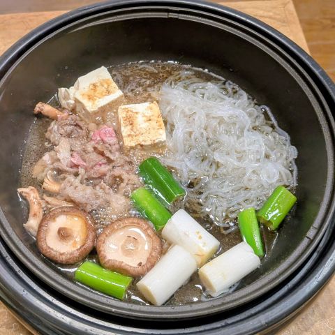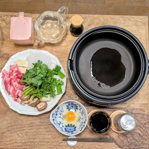 伴侶さんが送別会ということで、夕方から一人すき焼きです。