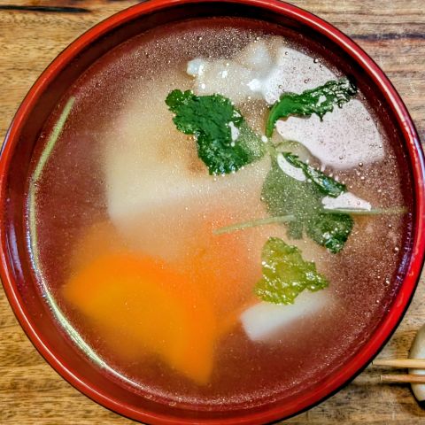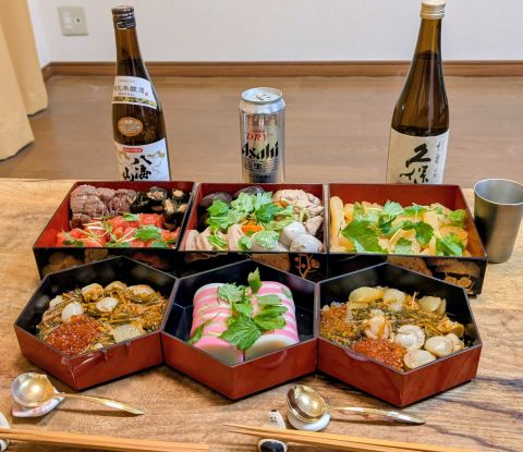 お雑煮は、例年最初に出すのですが、伴侶さんのアイデアで締めに出しました。このタイミングのほうがいいかもしれません。