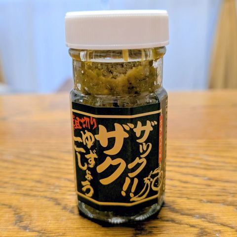 こちらは別に購入した柚子胡椒です。冷凍の必要がない分、塩っぱいのですが、こちらも柚子の香りが芳醇です。