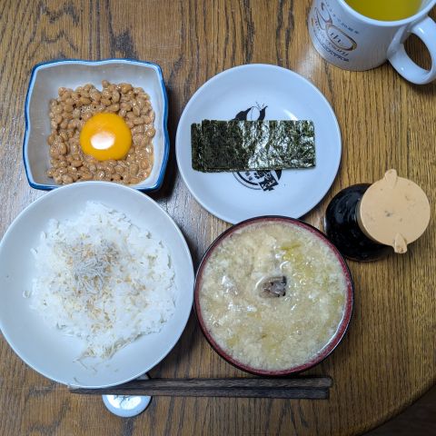 今日も元気いっぱい朝ごはんです。ありがとうございます! ですが、おネギを買い忘れました。