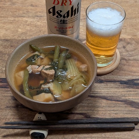 月曜日に作った煮物がまだ残っていたので、いただきました。