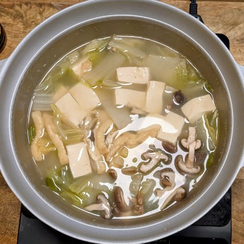鱈の水炊きです。あっさりしていておいしい。残ったお出汁で明日は雑炊をします。ありがとうございます。