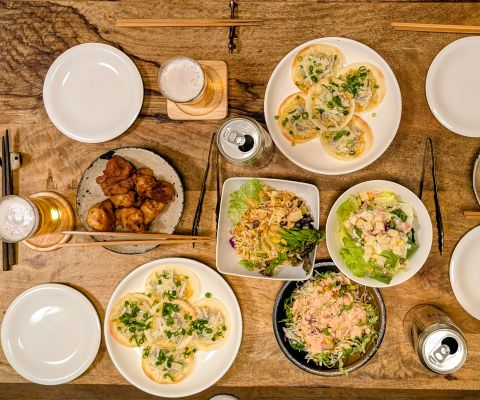 まずは唐揚げを中心に飲み会です。サラダとビールはM君が買ってきてくれました。しらすのミニピザは伴侶さんが作ってくれました。ありがとうございます!