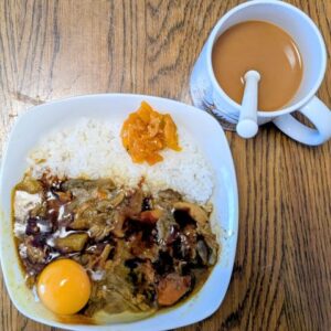 ご飯を炊いて、カレーライス。コーヒーと食べるのが好きです。