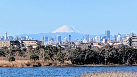 行徳橋北詰。抜群に美しい富士山(木花開耶姫様)が見られました。ありがとうございます。