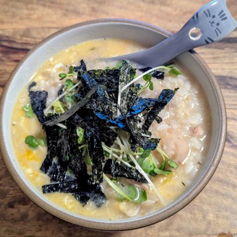 筑前煮のお汁がおいしかったので、雑炊にしてみました。