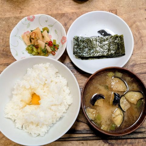 帰宅したら、伴侶さんがご飯を炊いていたので、お薬を飲むためもあって、いただきました。お味噌汁はインスタントです。