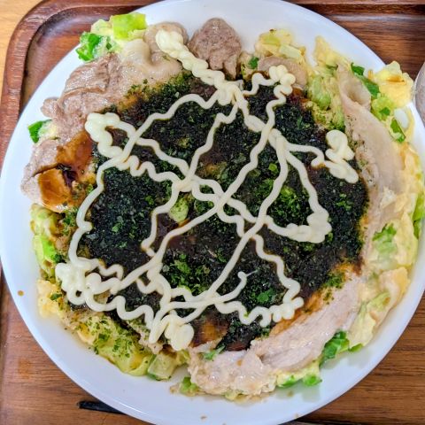 サッと作った豚玉。天かすがないのでちょっとべちゃっとしていますが、豚肉たっぷりでおいしい。
