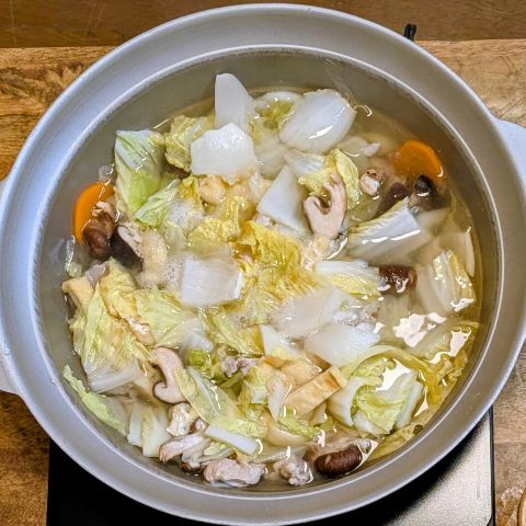 夜は、夫婦でお鍋。豚肉と白菜の水炊きです。ゆずポン酢でいただきました。