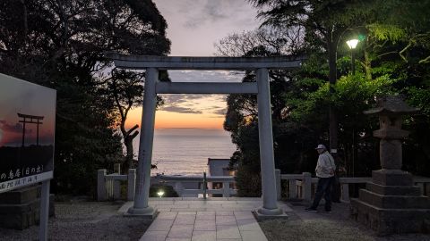 長い階段の上の鳥居からの風景です。集合時間に間に合わなくなるので、日の出は拝めませんでしたが、ありがたい景色です。