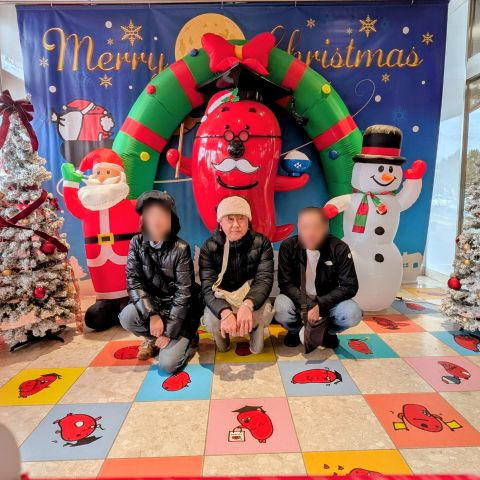 入ったところにも、クリスマス用の撮影スポットがあったので、記念撮影しました。