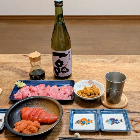 那珂湊と大洗のお土産で、晩酌です。中トロは1,000円引き(現金のみ)、ウニもお安かったです。ありがとうございます。