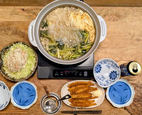 昨年の1月4日に構想した信州鍋を、2年近く経った今日、ようやく作りました。味噌仕立てで野沢菜を入れるという発酵鍋系です。そのほかはえのきたけ、油揚げ、牛肉、生マロニーを入れました。キャベツかレタスを使ってもよかったかもしれません。