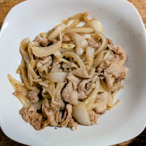 2年越しで、今日消費期限を迎えた豚コマ。タマネギと一緒に甘辛く炒めました。これもまたおいしい。ありがとうございます。