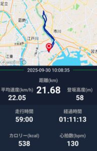 二日酔いなので、のんびり走った。アプリからの指示に従って「バッテリーを最適化する」を外したのだが、途中で富士山の写真を撮ったら、やっぱり中断した。だが、記録は残っていた。